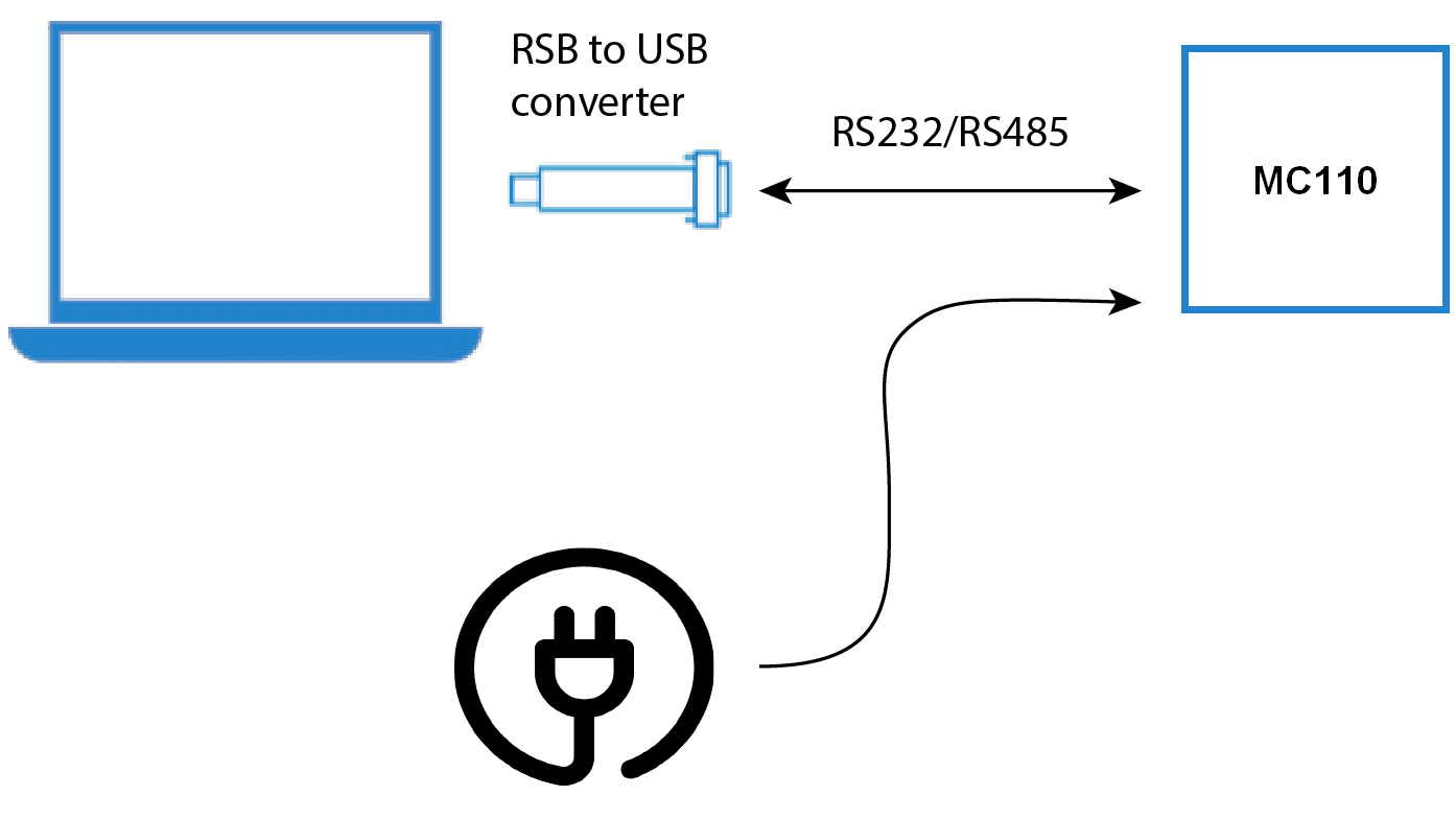 In order to configure Veronte MC110, connect it to a computer via USB (through an RS232/485-USB converter) with the harness cable.