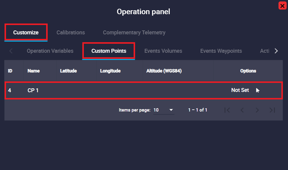 A Custom point is an operation element that can be linked to a waypoint of the configured mission.