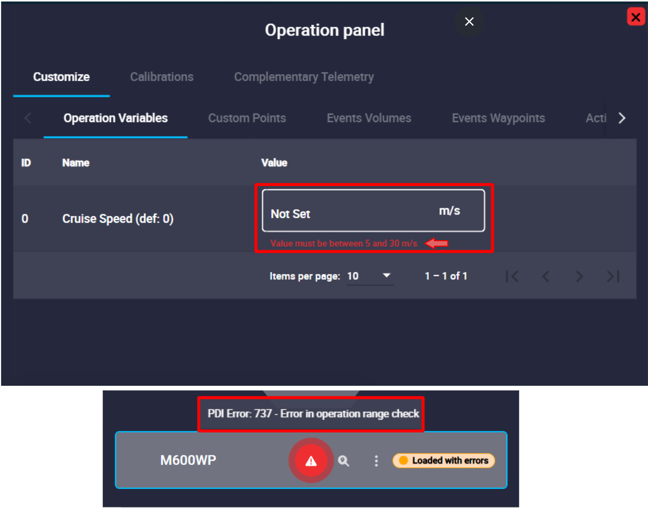 Users should note that these Operation Variables can have minimum and maximum ranges defined in their configuration in the 1x PDI Builder software.