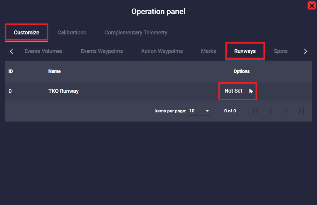 Runways are operation elements that can be linked to the runways of the configured mission.