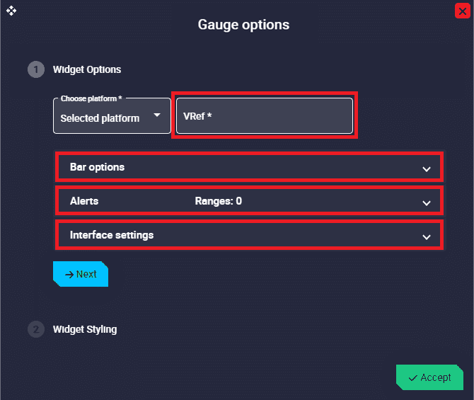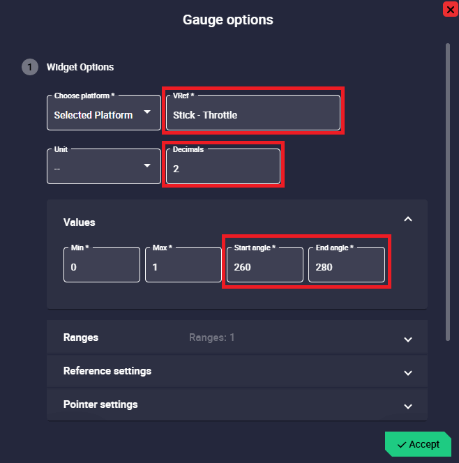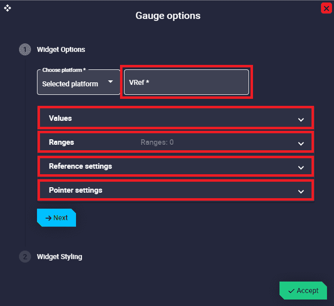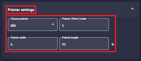 Pointer settings: Here the user can configure the pointer of the gauge.