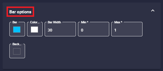 Bar configuration - Bar options example 2 As shown in the figure above, when the background bar is hidden ('Show background' option is disabled), the 'Background color' parameter does not appear.