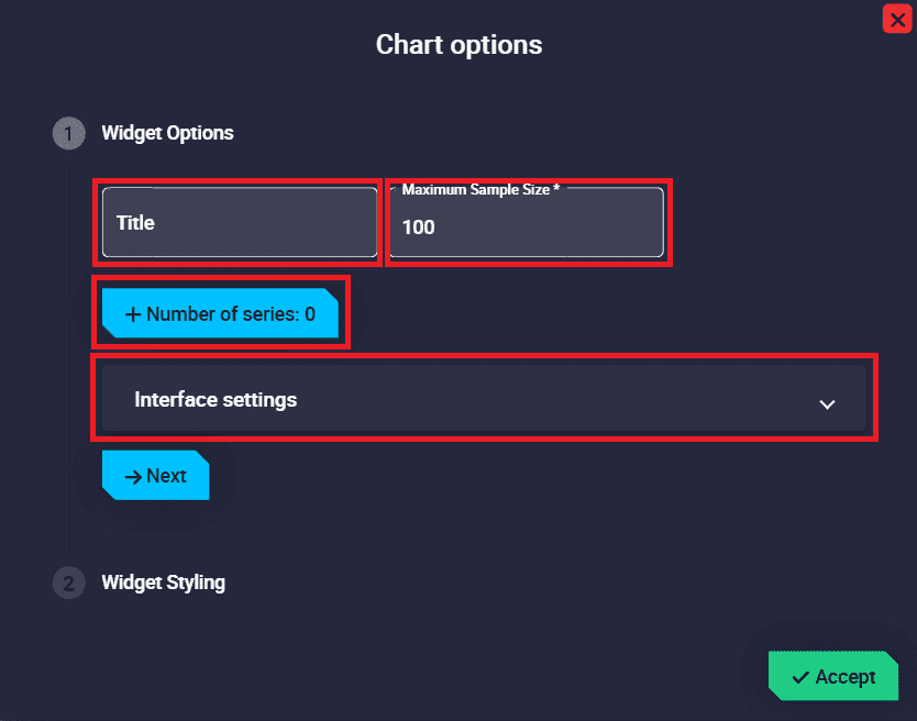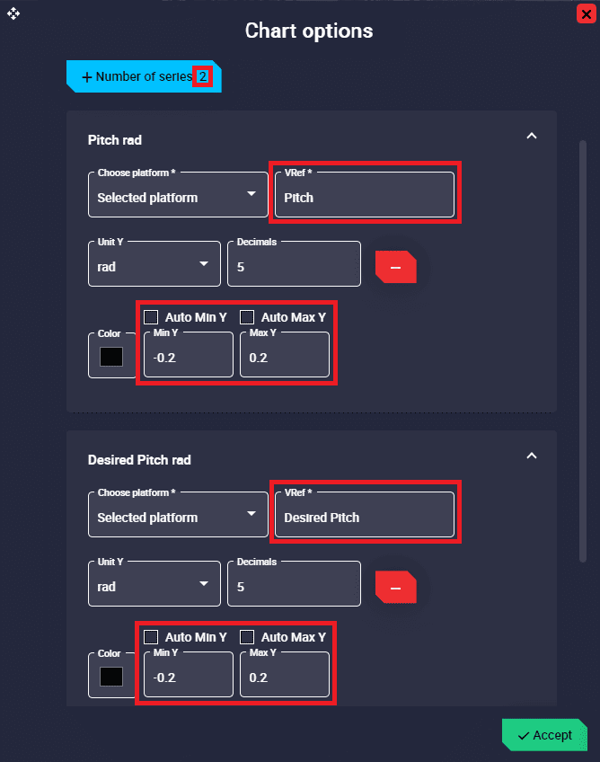 Number of series: Number of variables drawn in the chart. Users can add as many series as they wish to represent in the same chart.