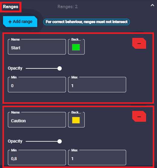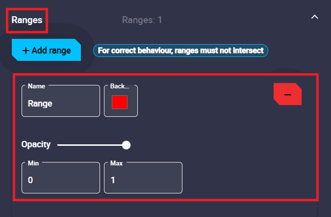 The panel warns the user that for correct behavior, ranges must not intersect.