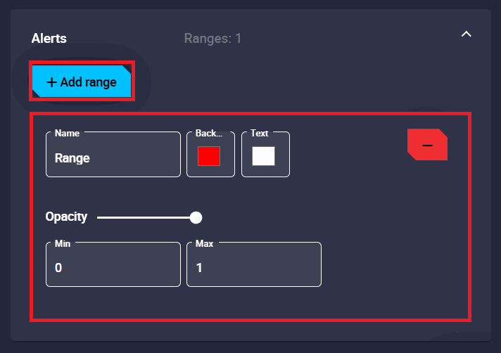 Alerts: Allows the user to set different ranges. For these ranges several customizations can be made: