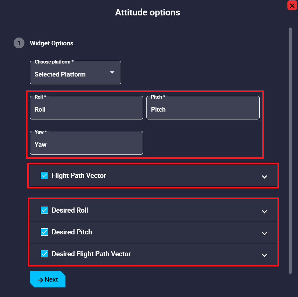 Desired Flight Path Vector: Users can choose a variable from the real angular variables of the system to be displayed as the desired flight path vector of the widget.
