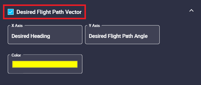 Color: The color in which the Desired Flight Path Vector is colored can be customized by the user. By default, yellow is selected.