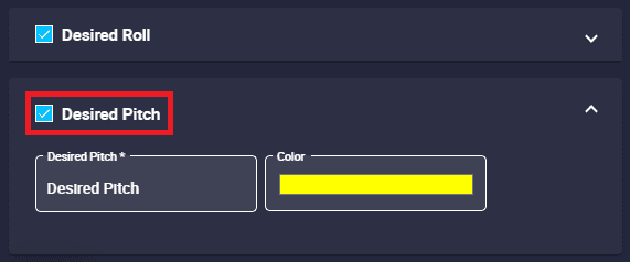 Desired Roll: Users can choose a variable from the real angular variables of the system to be displayed as the desired roll of the widget.