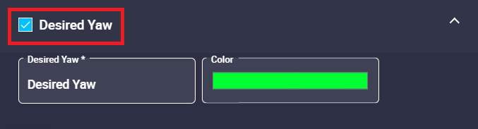 Color: The color in which the desired yaw is colored can be customized by the user. By default, green is selected.
