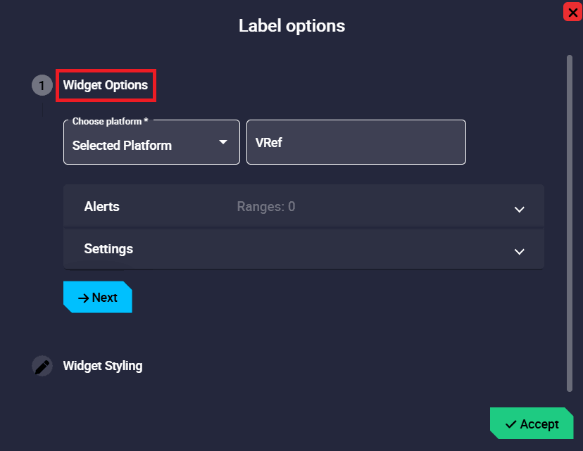 - Choose platform: Users must select the platform for which the widget is configured. The available options will always be the IDs of the connected Autopilots 1x and 'Selected platform', i.e. the platform that is selected.