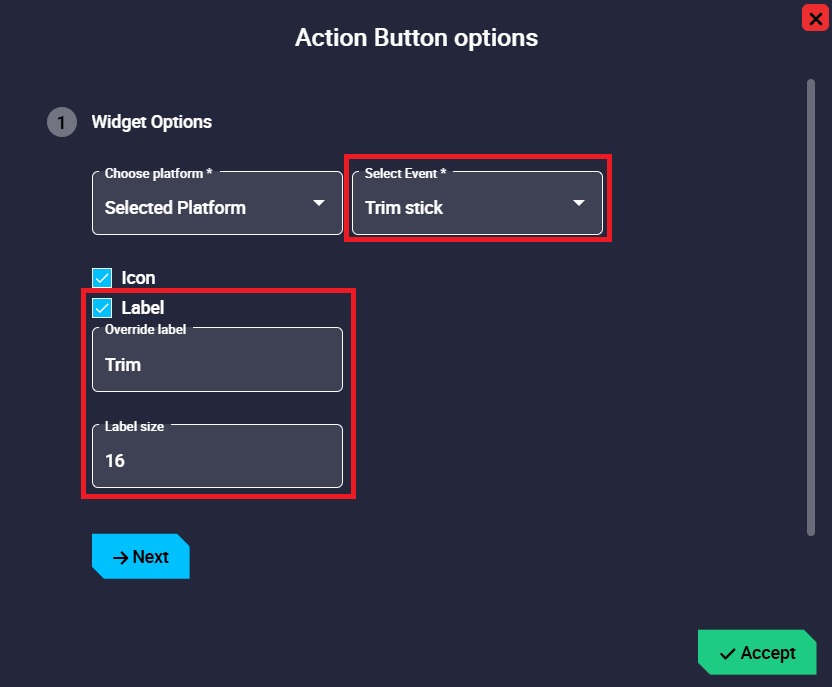 Gimbal Buttons configuration - Widget Options: