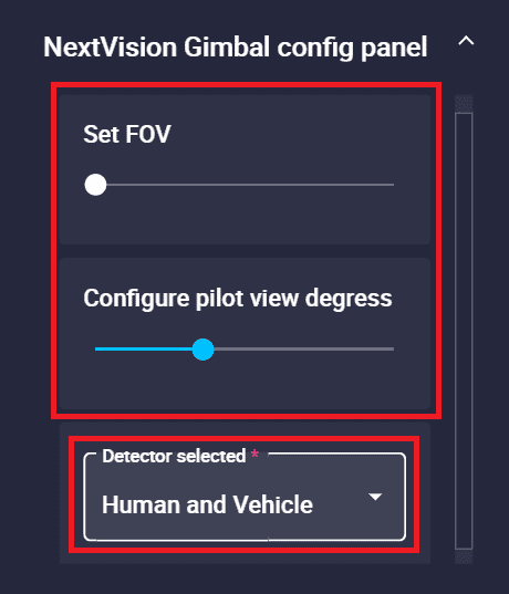 Gimbal Setup widget is a gimbal configuration panel, where the user can choose which gimbal controls can be managed from Veronte Ops.