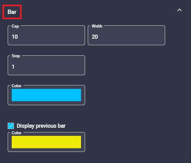 - Color: Color of the previous bar.