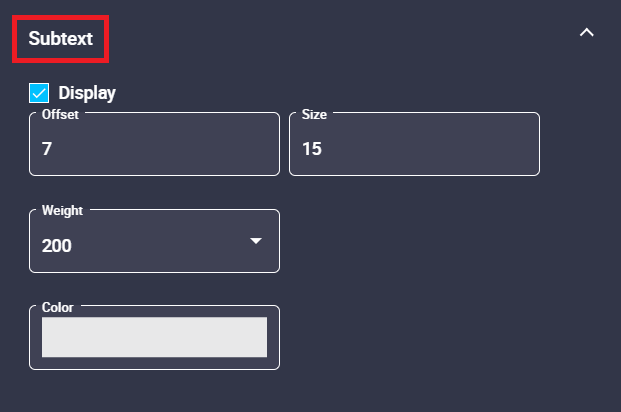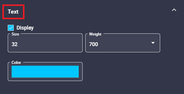 - Weight: The weight of the text value can be modified. The available options go from 100 to 900, default is 700.