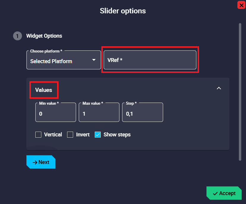 - Step: Here users must enter the step they want the slider to have. By default it is set to 0.1.
