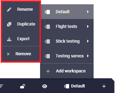 By clicking here, a list of all workspaces loaded in Veronte Ops will appear. The current workspace is the one that is selected, the one shown in blue.