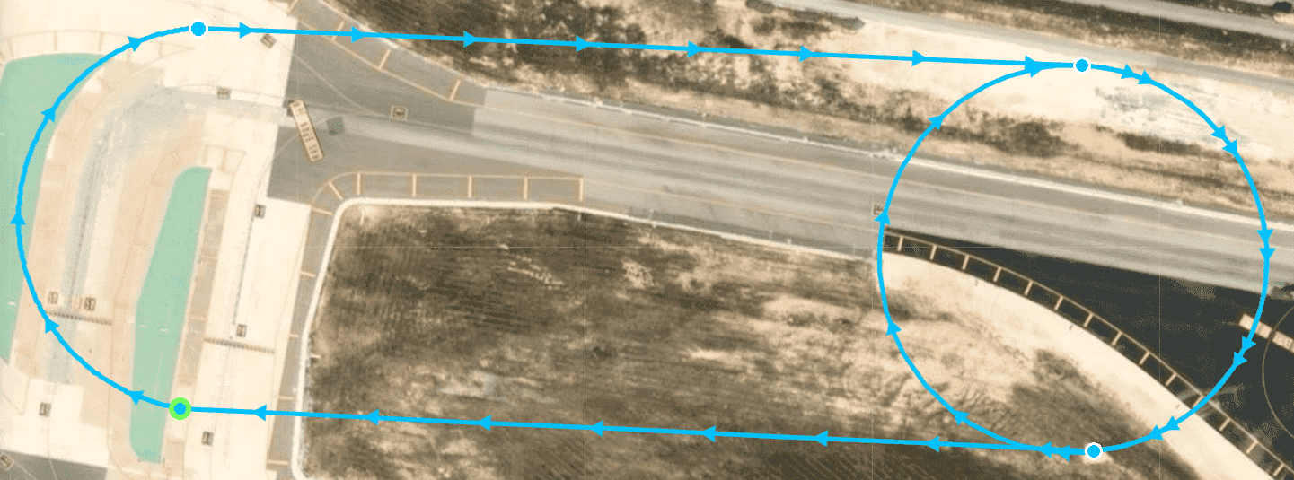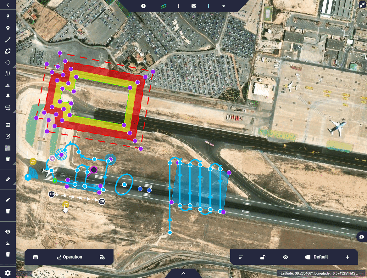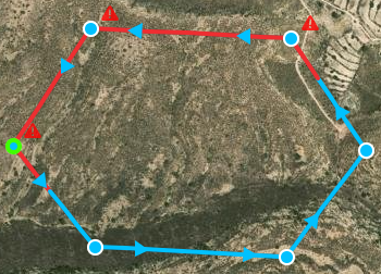 In addition, when modifying a mission with a Veronte Autopilot 1x connected, the "original operation" loaded in the autopilot will be greyed out and the modified one will be colored. This will be the case until the new changes are saved and uploaded to the autopilot, so the previous operation will be completely removed from the map. An example is shown below:
