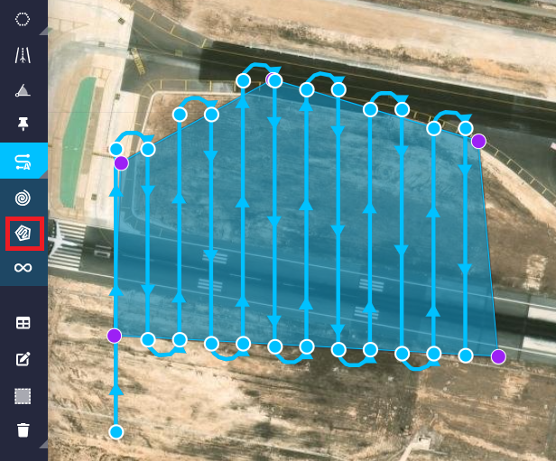 2. Drag button: When enabled (drag_on), users can modify the altitude of the waypoints by simply clicking and dragging them. If it is disabled (drag_off), it is not possible to move them: