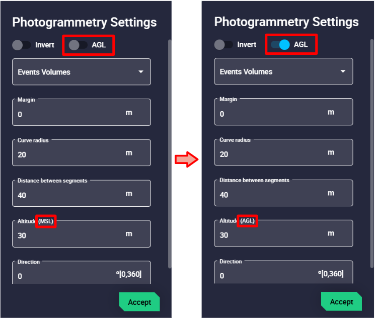 That is, if the user defines a waypoint at X m in AGL, Veronte Ops will automatically calculate what that value is in WGS84 and MSL.