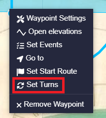 Users can check for collisions between route waypoints and terrain directly on the map or using the 'Open elevations' functionality described above.