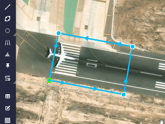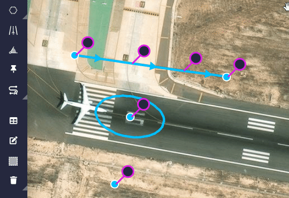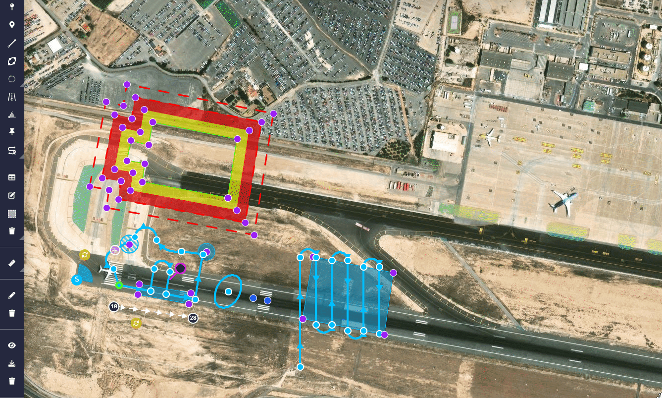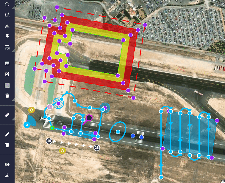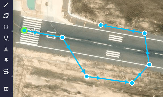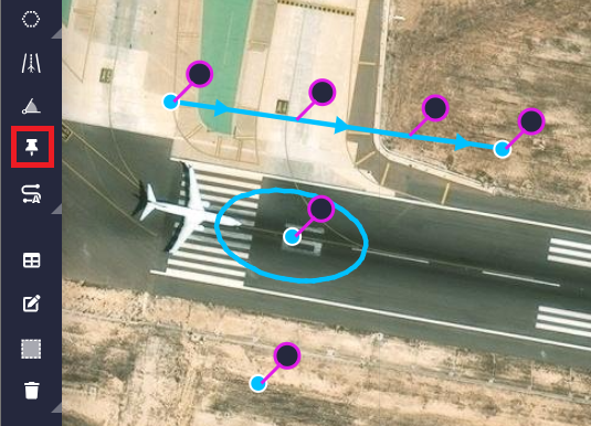 All the tools in this 'section' allow the user to design the mission, such as waypoints, segments, marks, runways, etc.