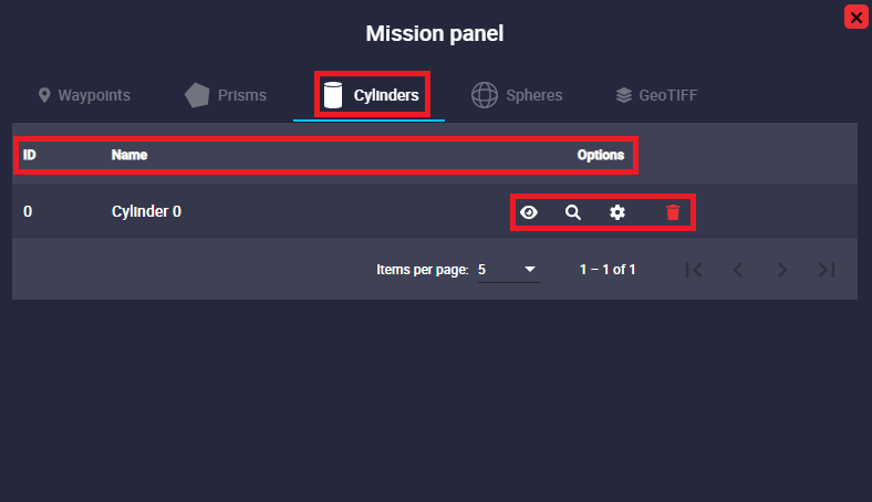Mission panel - Cylinders