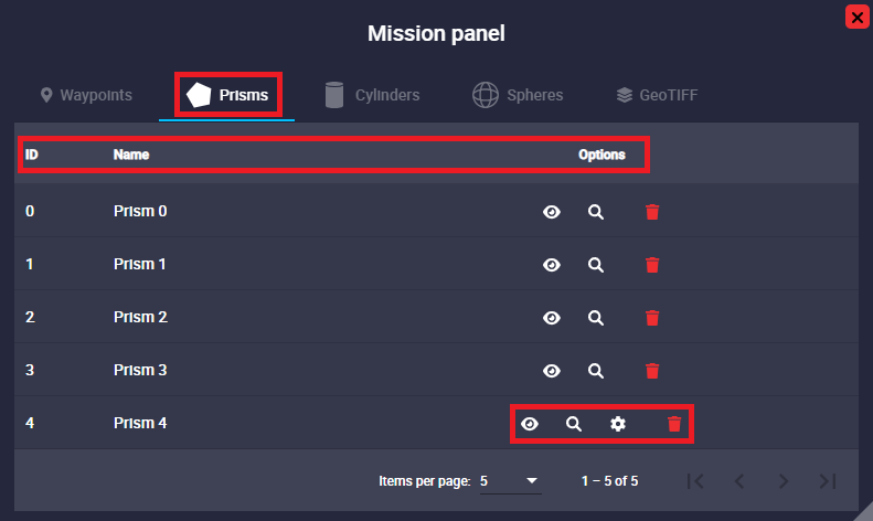 Mission panel - Prisms