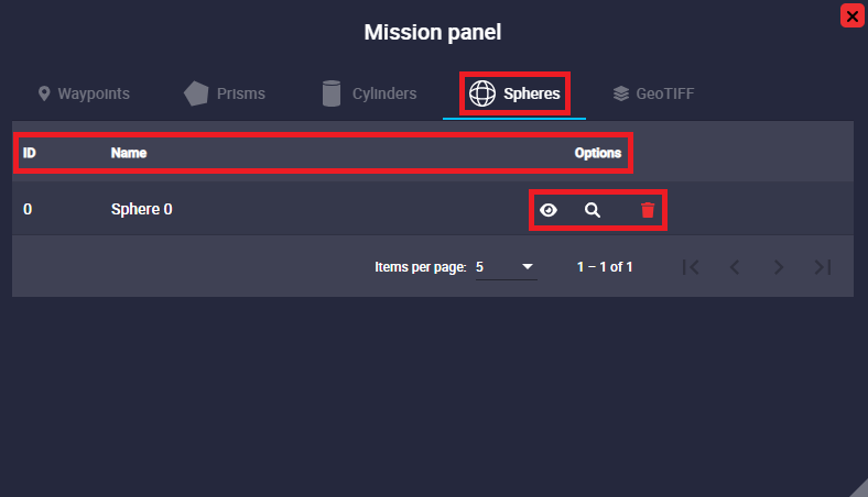 Mission panel - Spheres