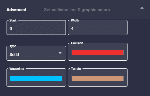• Advanced: The collision line and chart colors can be modified:
