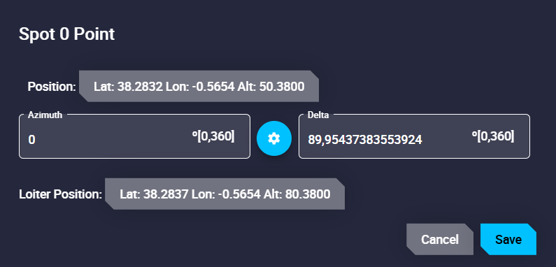 1. Matching it to the platform position. By selecting the icon, the waypoint coordinates and elevation will be automatically updated with those of the actual platform's actual position.
