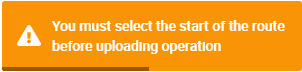 If users do not define any waypoint as the 'Start Route', the operation will not be uploaded to the autopilot configuration and the following warning notification will be displayed: