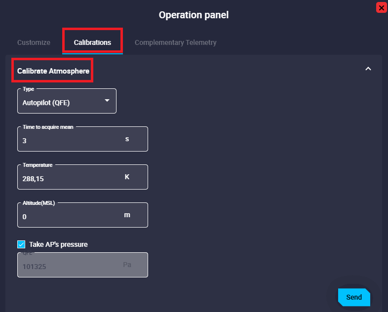 - Take AP's pressure: If enabled, static pressure will be selected from the autopilot measurement, otherwise users will have to enter it manually.