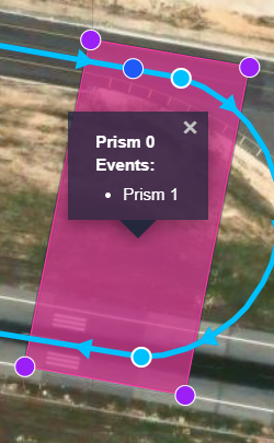 In the image above, the user can identify that there is a prism already defined and associated with an event, a sphere defined but without an associated event, and that there is no cylinder defined or associated to an event.