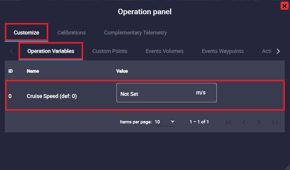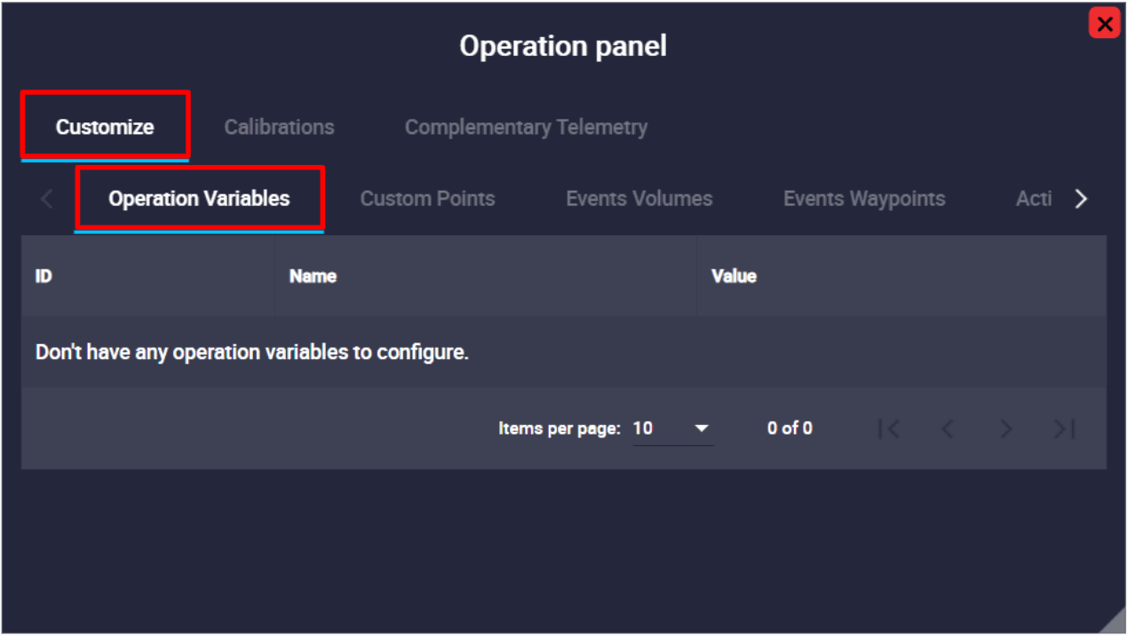 As explained above, operation elements must be created while building a Veronte Autopilot configuration. So, when a new Operation Variable is created, a new field will appear in the operation variables tab: