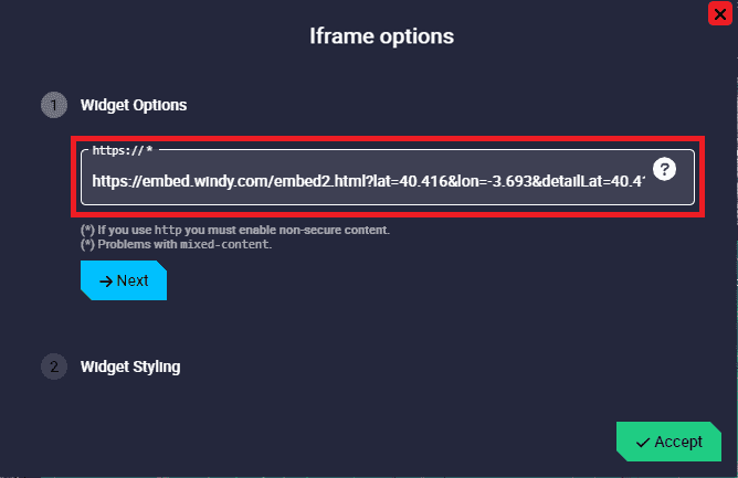 Widget Options: