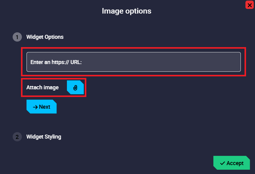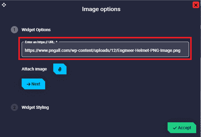 Image configuration - Enter an https:// URL: Users can enter the URL of the image to be displayed.