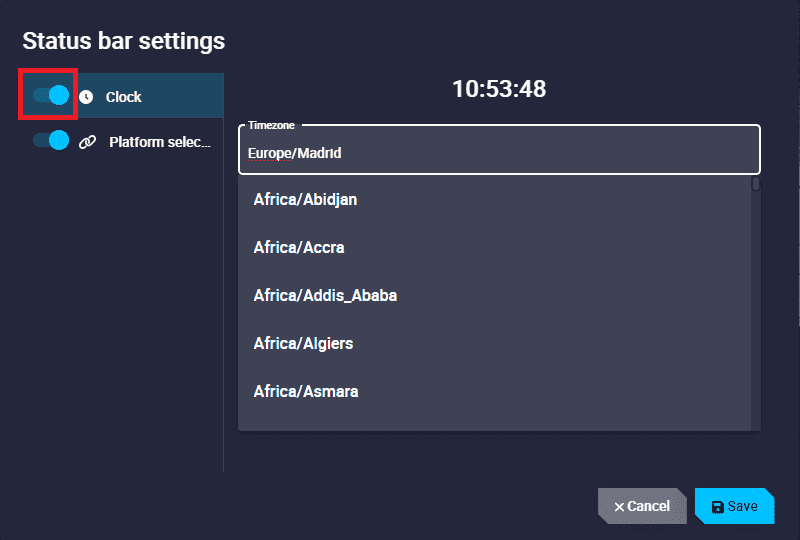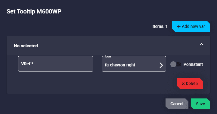 Platform icon settings - Set tooltip configuration - VRef: Select the desired variable to be displayed.
