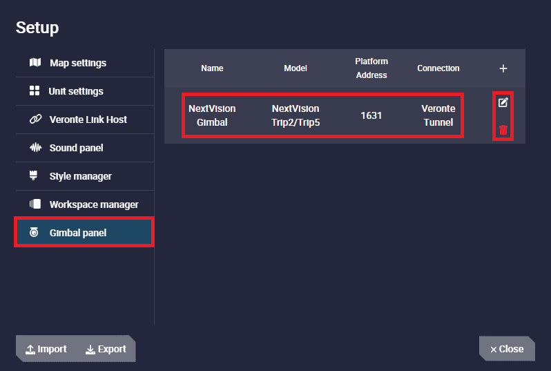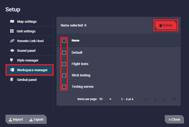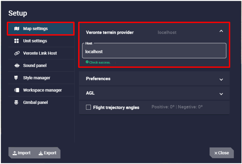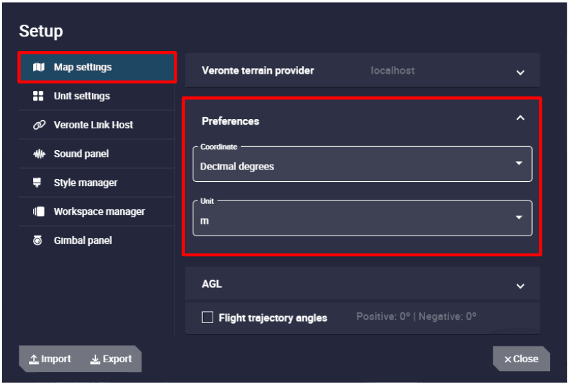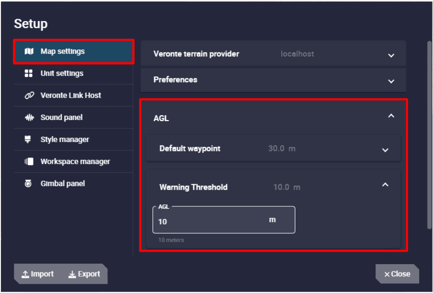 Furthermore, all these settings can be exported and imported from one Veronte Ops to another, for example to move them from one PC to another.