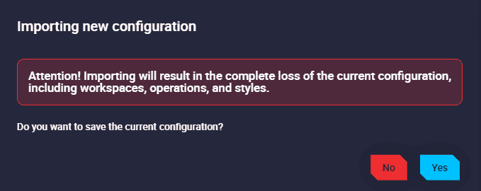 When the user tries to import a new Veronte Ops configuration, the following confirmation message will appear: