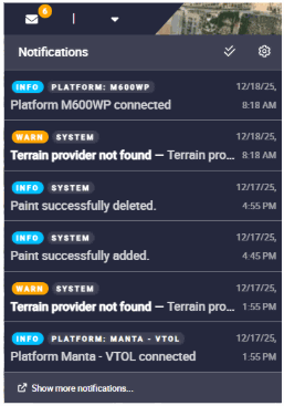 Notifications: Veronte Ops notifications for users. This is always displayed in the status bar.