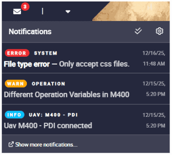 Veronte Ops will notify the user of any changes made with notifications (visual and audible, the latter is optional), as shown in the figure below: