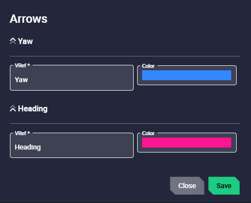 By default, the variables displayed are Yaw and Heading respectively. In addition, users can change the color of each arrow as desired.