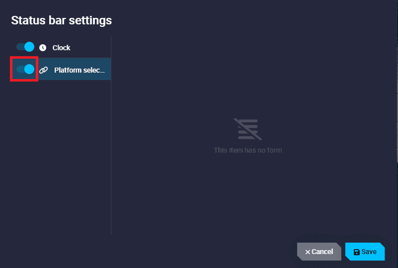 Set tooltip: Allows the user to display a variable next to the platform icon.