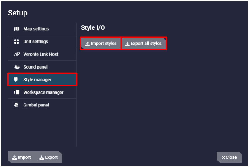 Import styles: By clicking here, users can import custom styles as a zip folder or by directly selecting all desired custom styles