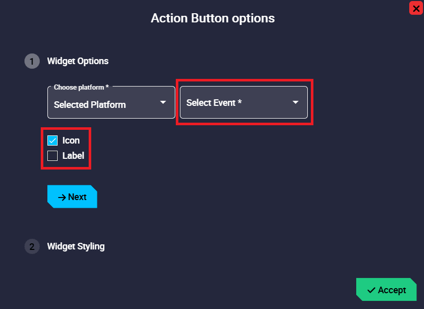 Choose platform: Permits the selection of the specific platform for which the widget is configured.