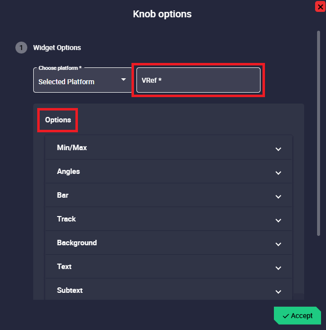 - VRef: Users can choose any real, integer or bit variable to be displayed on the knob.