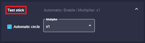 Stick configuration - Test stick - Automatic circle: An automatic circle test is activated.