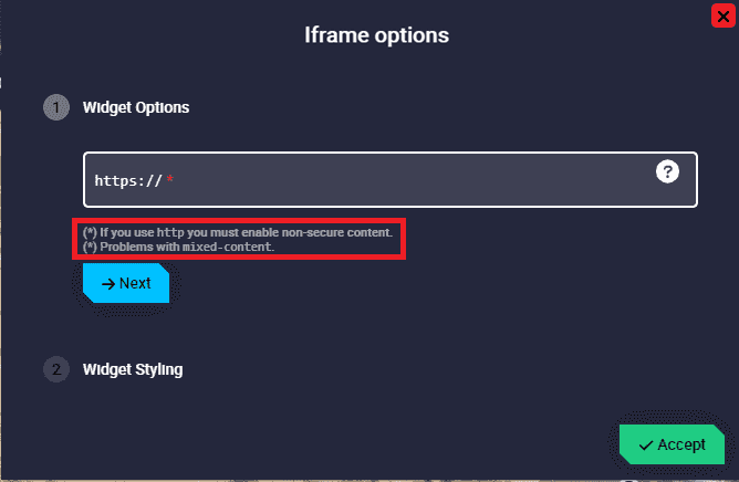 Widget Options: