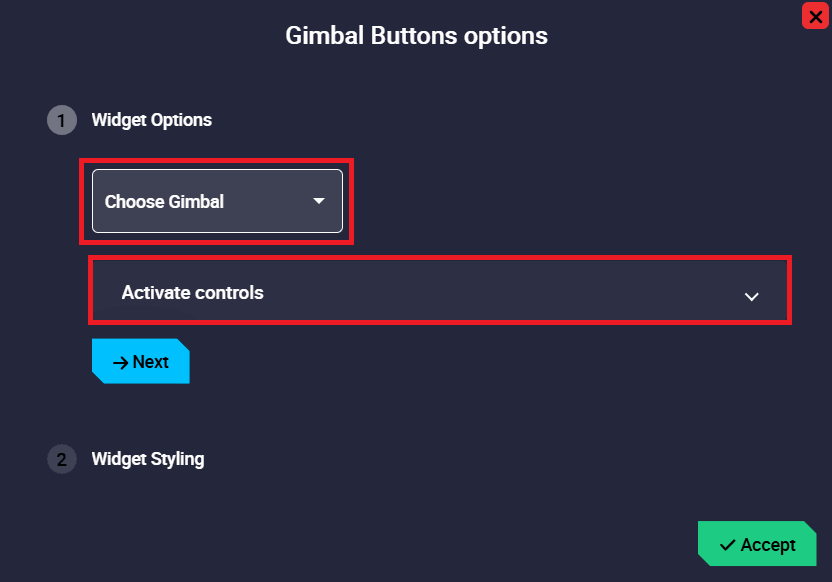 Gimbal Buttons configuration - Widget Options: