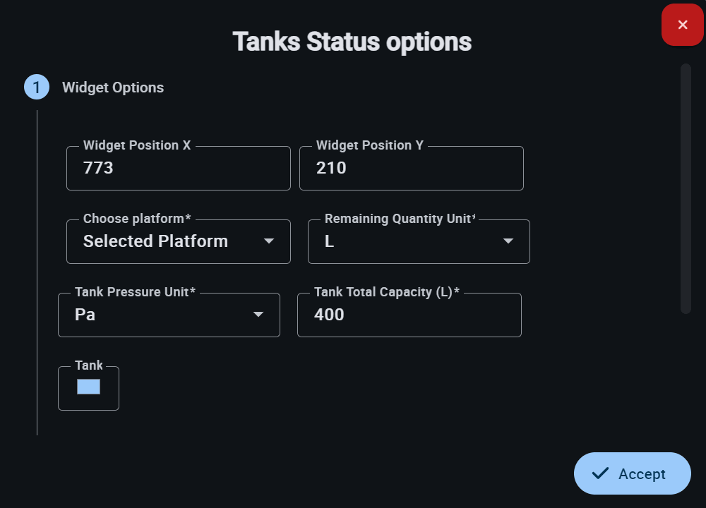 Tank: Allows the user to select the representative color for the tank in the graphic interface.